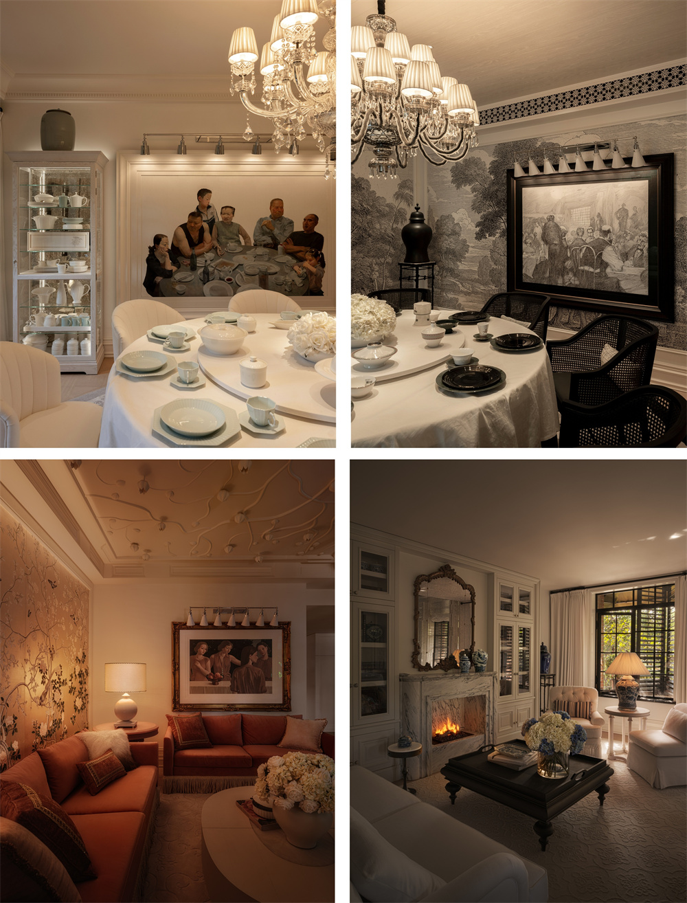 二层包厢以「元初」 「泓影」 「皎岚」 「霓裳」四大主题构筑不同心情的私宴场景:「元初」交融法度左岸的贵气与东方古玩的慎重,以中西器物共融的方法重现17世纪“东方瑰宝”进入欧洲的文明头绪;「泓影」以是非素描言语刻画镇定绅士气质,连通景象最佳天台,使版画景色与实在景致叠合一致;「皎岚」以影青瓷的“月白清影”为基调,为空间带来静寂内敛的高雅气味;「霓裳」专为女人打造,以de Gournay金箔手绘壁纸、粉色丝绒沙发与柔软原料营建松懈高雅的交际气氛,宛如城市中的一间“日子慢室”。调配THG Paris豪华卫浴及多幅保藏级艺术著作,新荣记在雍熙荣完成了味觉、美学与文明的三重交融,让东方餐叙在今世城市语境中具有了更具深度的艺术表达。