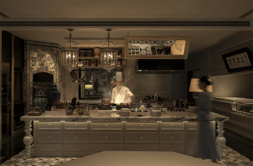 此家新荣记以我国代表性瓷艺——青花瓷为主线,将“文明互鉴”作为空间中心理念,追溯青花瓷跨过数百年的世界旅程,让中西美学、前史与日子方法凝练为空间中可触可感的体会言语。门厅以骑士风姿开篇,刻画老钱与新贵相融的沉着典礼感;一层连续敞开的交际气氛,与野外地中海式的松懈与亮堂天然照应,而KAIKI器会(日料区)以桧木、竹影与院子光影出现静雅东方意境。青花纹样一起被拆解为品牌标识体系的视觉言语,稀有古物与CCD规划的原创餐具一起连续青花瓷的文明头绪,使空间在行走间出现多元文明的逐步铺展。